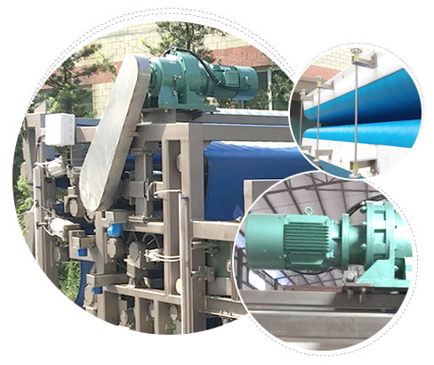 強(qiáng)力對輥壓渣脫水,經(jīng)過高壓強(qiáng)力對夾輥擠壓,使污泥達(dá)到較大程度的固液分離。